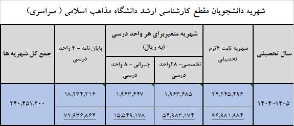 5-مقطع کارشناسی ارشد دارای دو نوع پذیرش روزانه و نوبت دوم می باشد.  پذیرش روزانه به صورت رایگان و پذیرش نوبت دوم مشمول شهریه است که مقدار برای ورودی سال 1404 به شرح ذیل می باشد: