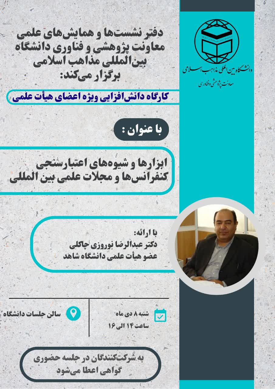دفتر نشست‌ها و همایش‌های علمی معاونت پژوهشی و فناوری دانشگاه بین‌المللی مذاهب اسلامی برگزار می‌کند: