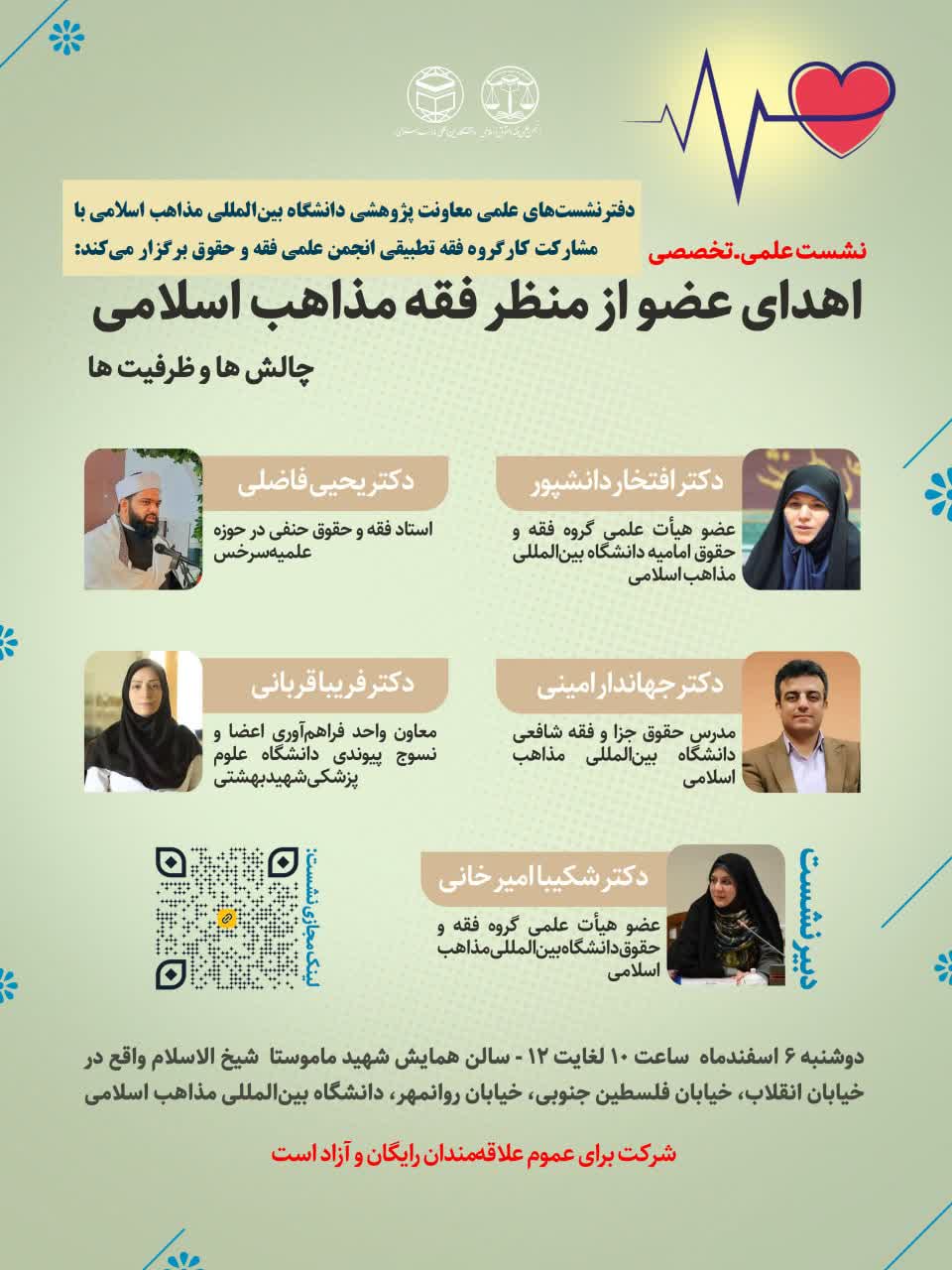 نشست علمی ـ تخصصی بررسی مبانی فقهی و حقوقی چالش‌های اهدای عضو در میان مذاهب اسلامی دوشنبه ۶ اسفند برگزار می شود