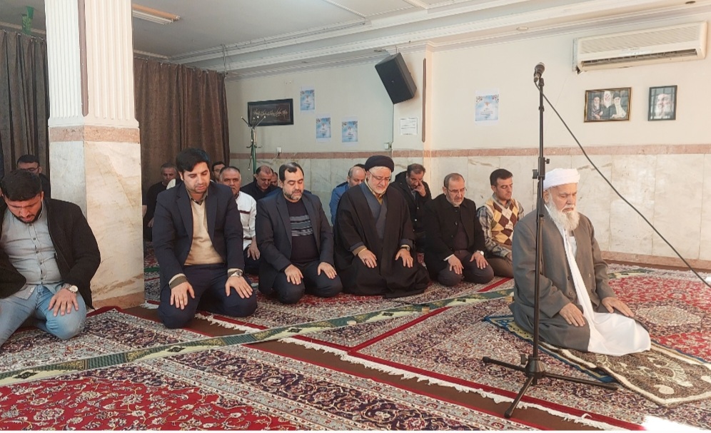 اقامه نماز وحدت ظهر و عصر با حضور مولوی محمد اسحاق مدنی در دانشگاه بین‌المللی مذاهب اسلامی