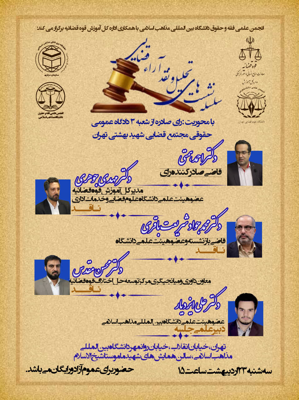 سلسه نشست های تحلیل و نقد آرای قضایی/ با محوریت:رای صادره از شعبه ۳ دادگاه عمومی حقوقی مجتمع قضایی شهید بهشتی تهران