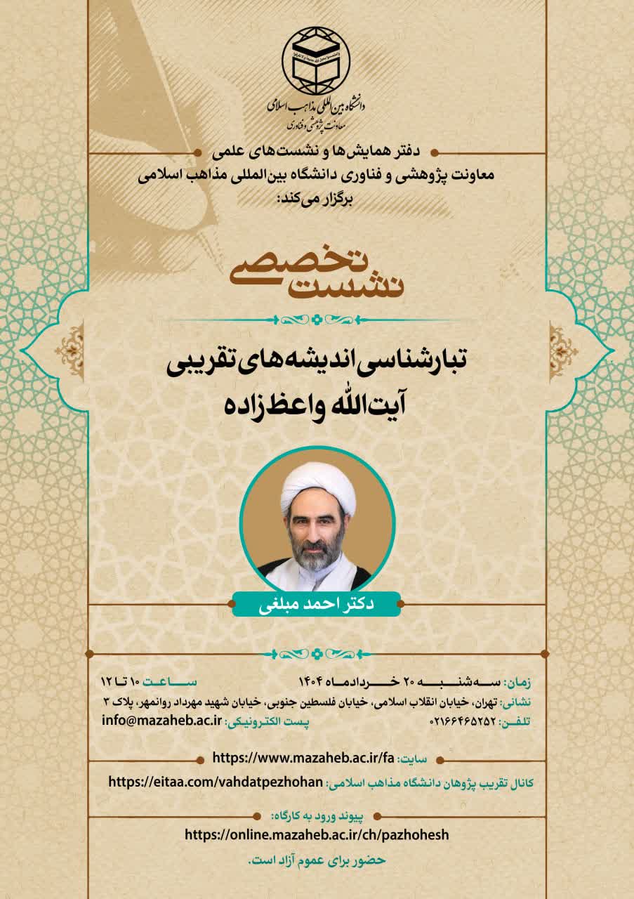 نشست تخصصی «تبارشناسی اندیشه‌های تقریبی آیت‌الله واعظ‌زاده» با سخنرانی دکتر مبلغی ۲۰ خرداد برگزار می شود